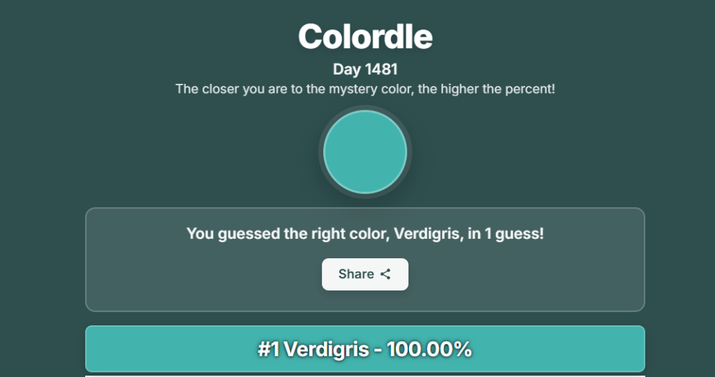 If you played today’s Colordle puzzle, you may have noticed that the mystery color belonged to the blue-green family. Many players likely guessed shades such as teal, turquoise, or sea green because the color appeared cool and slightly muted.