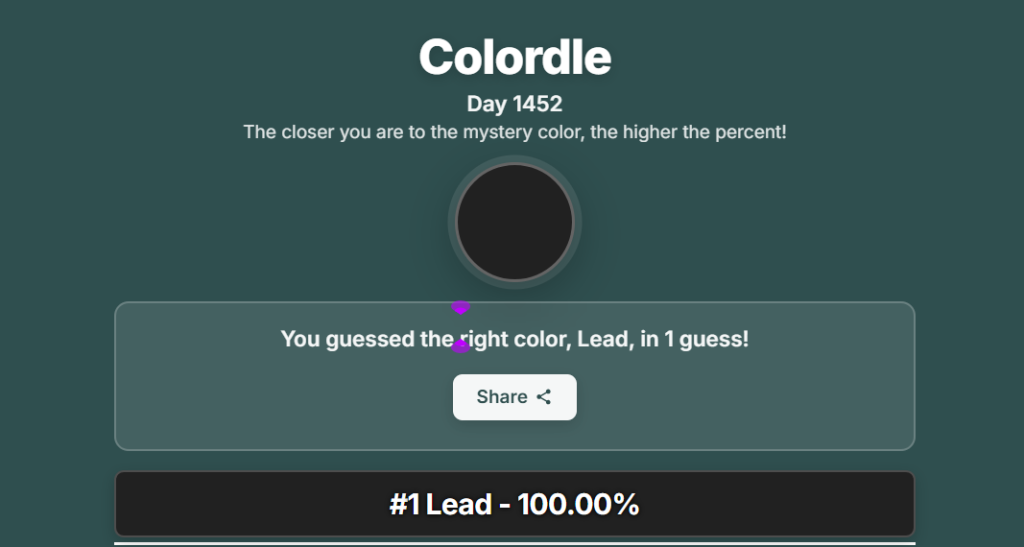 The similarity percentage shown after each guess helps guide players closer to the exact color name. When your guesses reach high percentages, it usually means you are already very close to the correct shade.